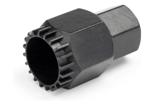 En acier traité thermiquement, le BBT-22 s’utilise avec une clé torque, une clé à cliquets de 3/8”, une clé plate de 32mm ou le démonte roue libre FRW-1.
