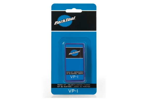 Le kit de rustines VP-1C comprend 6 rustines fines et fléxibles avec des bords effilés pour adhérer au profil de la chambre à air. Chaque kit est packagé dans une petite boite en plastique avec du papier de verre pour nettoyer la chambre et une notice.