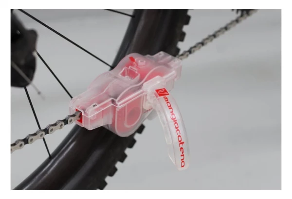 Si vous souhaitez nettoyer la chaîne en profondeur et réduire la quantité de liquide dégraissant utilisé, Mangiacatena est fait pour vous. C’est le premier nettoyeur de chaîne équipé d’éléments lamellaires aux deux extrémités, de sorte que la chaîne peut être nettoyée en la déplaçant dans les deux sens, très utile également pour les vélos électriques. Équipé de six brosses rotatives et d’une poignée robuste.