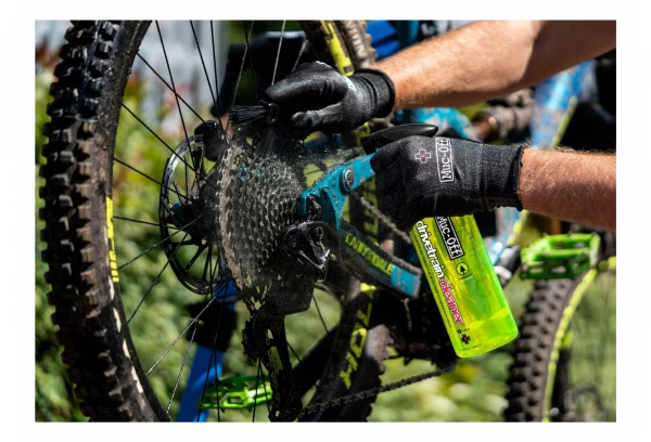 Le Muc-Off Bio Drivetrain Cleaner est la solution complète de nettoyage de la transmission qui peut être versée dans un dispositif de nettoyage de chaîne ou pulvérisée directement sur vos segments de chaîne, cassettes arrière et dérailleurs pour nettoyer l’ensemble de votre transmission en quelques secondes. Il est également entièrement biodégradable * et sans danger pour le métal, le plastique, le caoutchouc et les joints. Vous n’avez jamais vu de tels résultats. Pourquoi ne pas essayer d’utiliser Bio Drivetrain Cleaner avec la machine à chaîne sale Muc-Off X-3 pour fournir le nettoyage le plus profond, même sur les chaînes les plus sales!