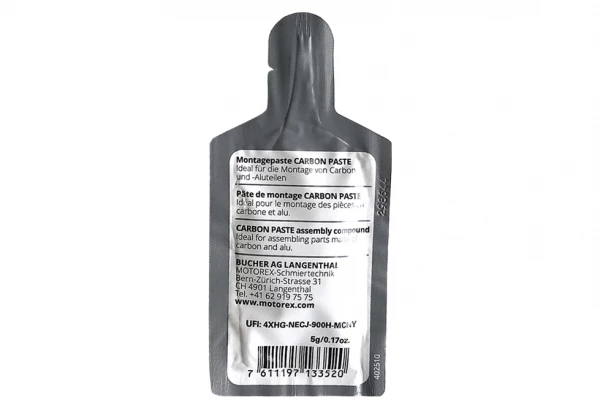 La pâte de montage Motorex Carbon Paste est idéale pour le montage de pièces en carbone et en aluminium (tiges de selle, pédales, potences, etc …) dans le domaine du vélo. Cette graisse facilite le démontage de liaisons par adhérence. Elle permet de diminuer jusqu’à 30 % le couple de serrage nécessaire.