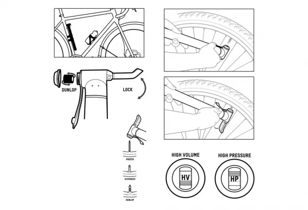 Mini-pompe. La pompe idéale pour les pneus de gros volume. Alors qu’elle est plutôt destinée pour le VTT, sa pression atteignant les 8 bars la rend digne d’une utilisation pour la route également.